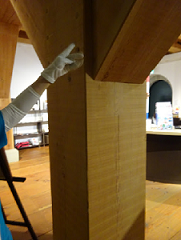 右の写真が穴の中の様子。木の部分はレプリカです。本物は厳重に保管されているそうです(一部は資料館で展示中)。遺跡の周りにはいまも縄文時代にも在ったであろう栗林やブナ林がそよ風をたてています。栗の巨木の森なんてものを想像してしまいますね~~ ブナは建材には向かないので昔の人も栗の木を使っていたことでしょう。