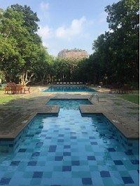 嘘じゃなかった! (決して入らないけど)プールサイドからシーギリヤ・ロックが見える宿!! すでにテンションMAX! マッドMAX!!