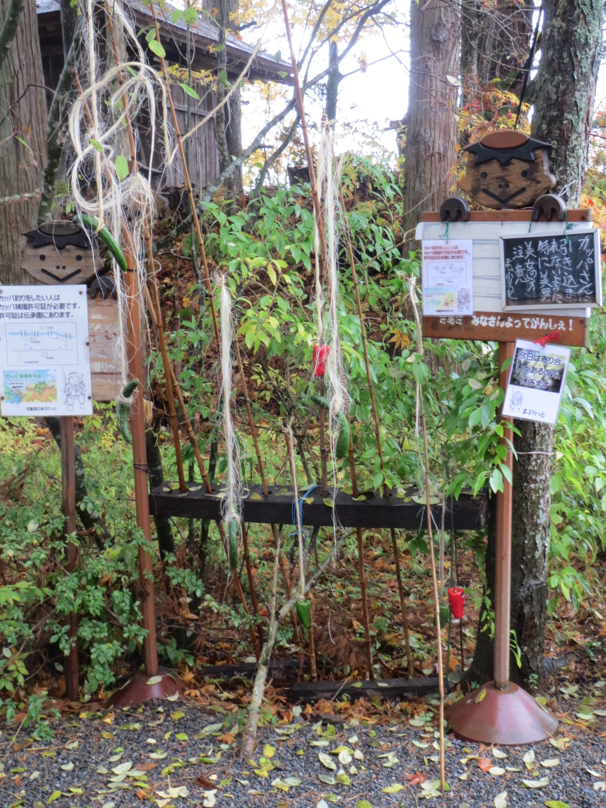 絶賛待機中の釣竿(管理人さんは昼食中!)、謎のカッパの社と、ミステリアスアイテムが満載! やっぱね、本番は夏場だよね☆