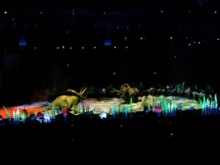 このショーは、実物大の恐竜たちが、アリーナ上を所狭しと動き回るんです……!!