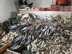 野菜や魚の種類がほんとに豊富です。とくに、野菜のほうは見たこともないような種類が多くて目を見張るばかり!!