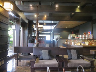 お世話になるお宿は雲仙きっての老舗旅館福屋さん! 外観写真を撮り忘れたので(アホ)ロビーの奥のカフェ・ラウンジの写真でも。