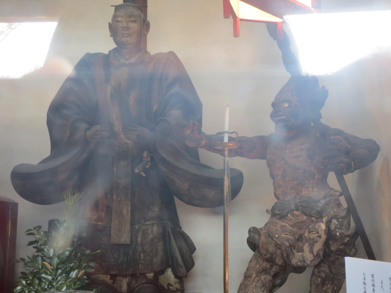 ついに来た! 初の六道珍皇寺! 右は、隙間から撮らせていただいた小野篁卿と牛頭像(だったかな?)