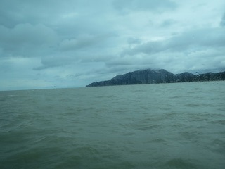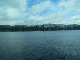 出航直後の曇天の様子です。この日、本土側は雨がぱらついておりました。
