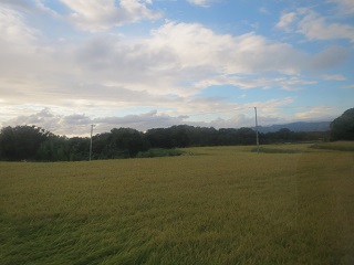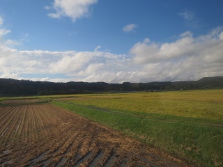 特筆すべきは、島の広大さ。しばし内陸へと車が進めば、国仲平野と呼ばれる広大な平地と山地とがどこまでも広がっているのです。季節はちょうど秋の入口、刈り入れの時期を迎えた黄金色の稲穂がどこまでも大地を彩っておりまして、このうえなく美麗でございました。この辺りの風景には、ご覧の通り、日本海や島を感じさせるものは何もありません。東北かどこかの山奥だと言われてもおかしくないぐらいの懐の深さ。