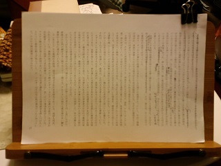 ほら、A4の紙も置いて読めるのであります、隊長! 長時間の推敲が楽になりそうv (ちなみにここに出ている原稿は便宜上引っ張り出した大昔の何かです……) 紙推敲派の方には特にオススメ! A4の紙なんか読まねー、という方はもうちょっと小ぶりかつエレガントなタイプのものが多数発売されておりますんで。
