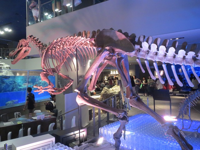 福井県立恐竜博物館とのコラボでやってきた恐竜の骨格展示も! バリオニクス様っ……!