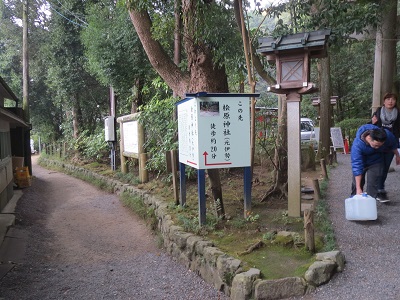 こちらには病を除くと言われる神水が湧き出る薬井戸があり、そこで自由に飲んだり、汲んで持ち帰ったりすることが出来ます(社務所でペットボトルに入れて販売もされていました)