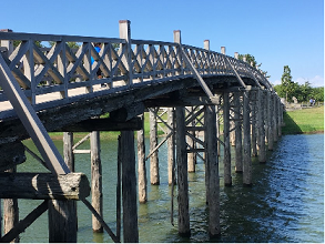 で、すみません、ここは実際には1日目に行った場所なのですが、なぜか紹介し忘れていました……津軽富士見湖にかかる鶴の舞橋という、日本最大の木造三連橋です。