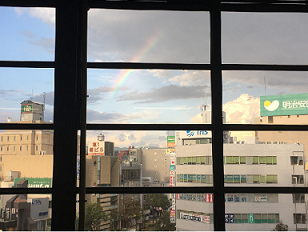 盛岡駅で帰りの新幹線をまっていると、向こうになんと虹が。これは、、何かの予兆か!?